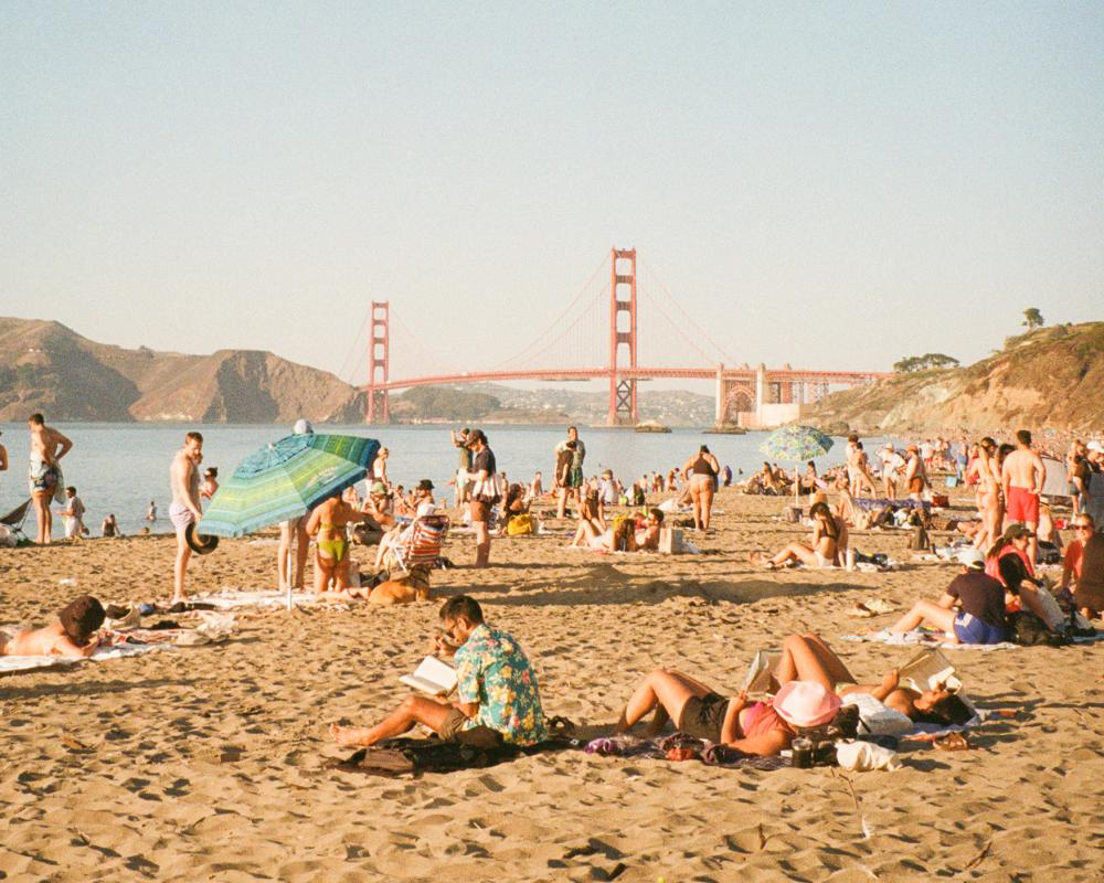 Baker Beach during my first San Francisco heat wave was a sight to behold. The shore transformed into a colorful patchwork of beach towels, umbrellas, and swimsuits, with the Golden Gate peeking out from the haze. It seemed like everybody else in the city was also here chasing the heat, the warmth offering refuge from the fog that usually blankets the city.