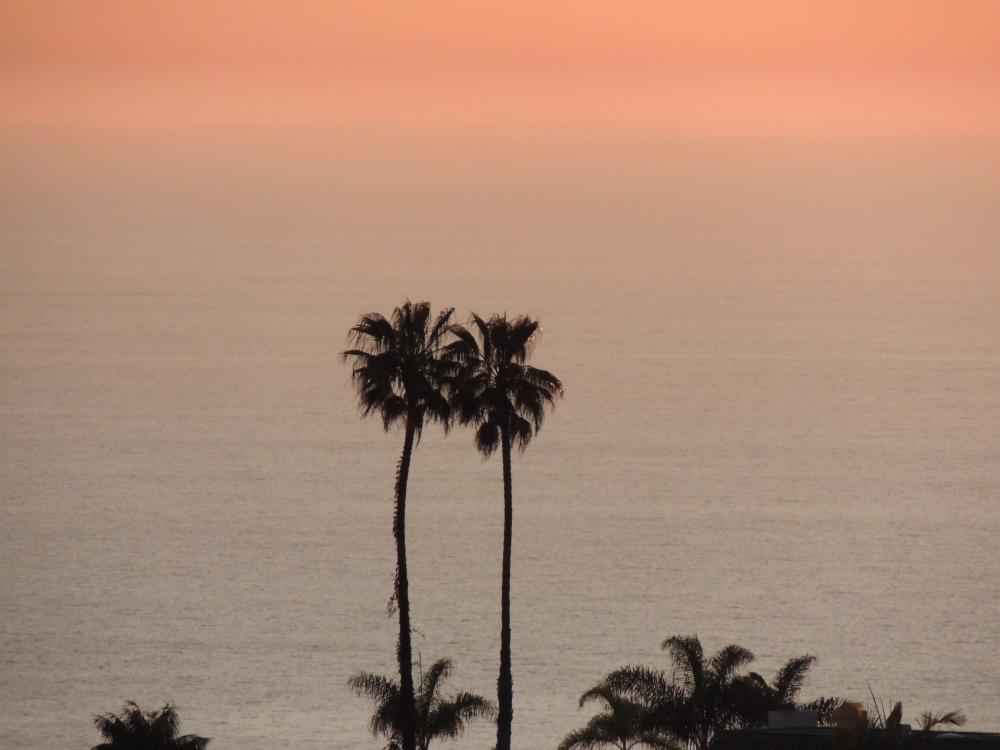 This photo captures a beautiful San Diego sunset during a brief study break on dedicated (time set aside for medical students to study for their board exams). The gradient from warm pink to gentle orange to ultimately an ocean gray marks the transition from day to night, and another day of studying done. The silhouette of the two palm trees stands out against the skyline while a few other shorter palm trees fill the bottom of the image. The beauty of the sunset is a good reminder to take a deep breathe and appreciate your surroundings even during busy times!